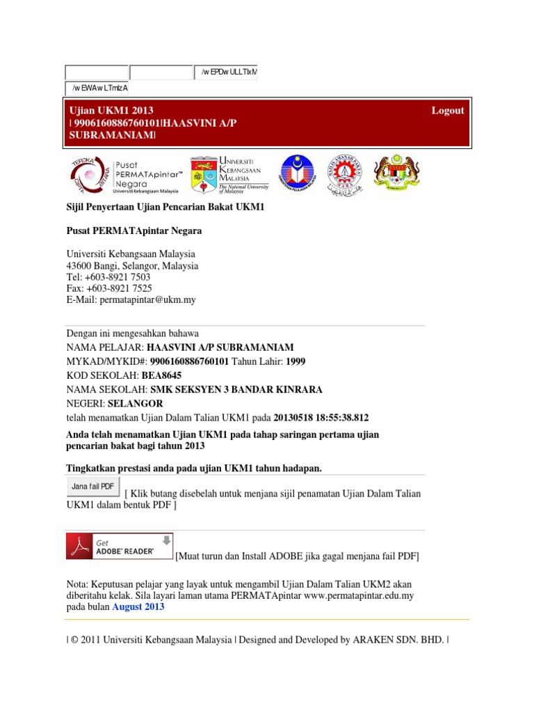 Web Ujian UKM2 Genius pintar Sesi 1. Web Up to 3 cash back 2019-07-18_calon Ujian Ukm 2 Sk Taman Johor Jaya 31 Julai 2019 - Free download as Excel Spreadsheet xls PDF File pdf Text File txt or read. Sila semak nombor telefon dan emel yang didaftarkan adalah betul atau kemaskini di pautan httpspelajarpermatapintarukmmy.